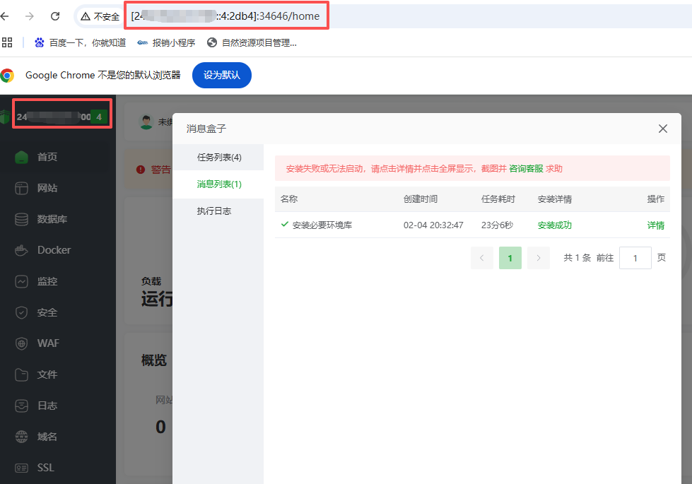 至此我的面板已经可以通过ipv6地址访问了。