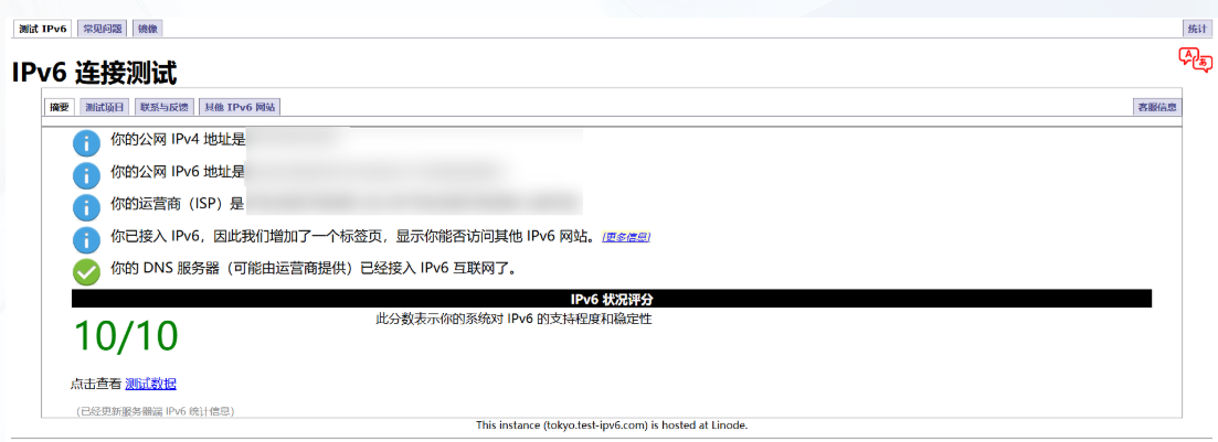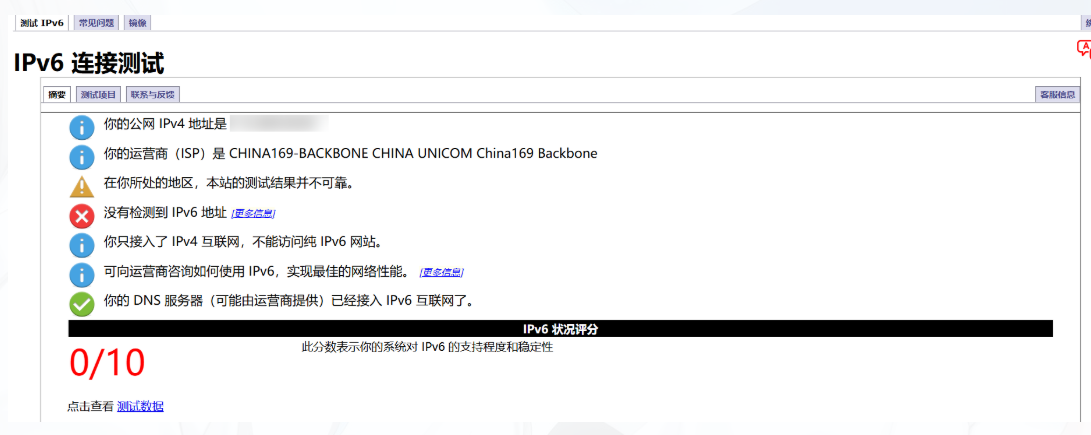 1.先检测本地网络是否支持ipv6环境,若本地不支持将无法连接上服务器        检测地址跳转