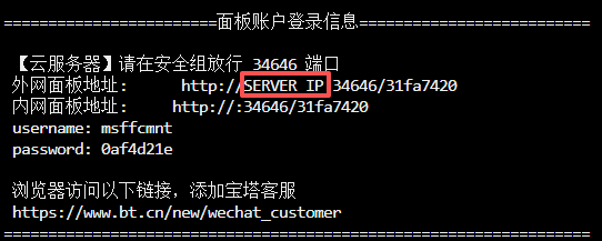 外网面板地址:      http://SERVER_IP:34646/31fa7420